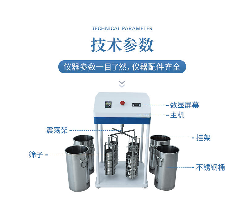 4、標準篩孔徑:10mm,7mm,5mm,3mm,2mm,1mm,0.5mm,0.25mm。(可選配其他規格孔徑)